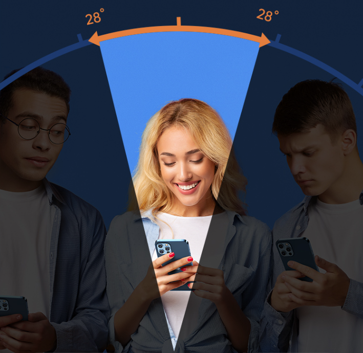 The phone screen is only visible to people directly in front of the screen keeping your information safe and preventing others from seeing the information by looking up
