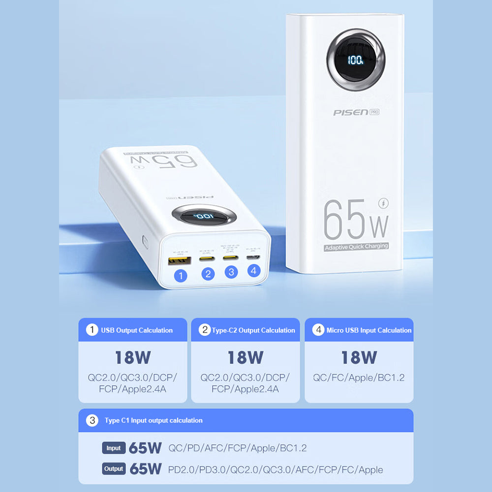 Pisen-PRO Digital Power Bank PD65-3 30000 (65W) (LS-DY100/ White)